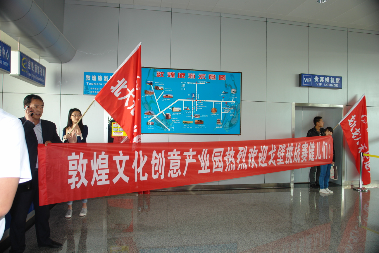 三、细致谋划、认真运作。在北大光华管理学院参加“玄奘之路”戈9先行考察团来敦煌文化创意产业园实地考察的基础上,我们已正式到敦煌机场接待了三期先行考察团,并全部按他们的要求安全的送达到瓜州目的地。同时我们精心制作了“兰州南特数码科技集团祝戈壁挑战赛圆满成功!”、“敦煌文化创意产业股份有限公司祝戈壁挑战赛圆满成功!”等横幅5条、彩旗5面,在敦煌飞机场和敦煌文化创意产业园进行了广泛的宣传,收到了非常好的效果,为宣传“敦煌”、“戈九”走出世界,做好了应有的前期准备工作。