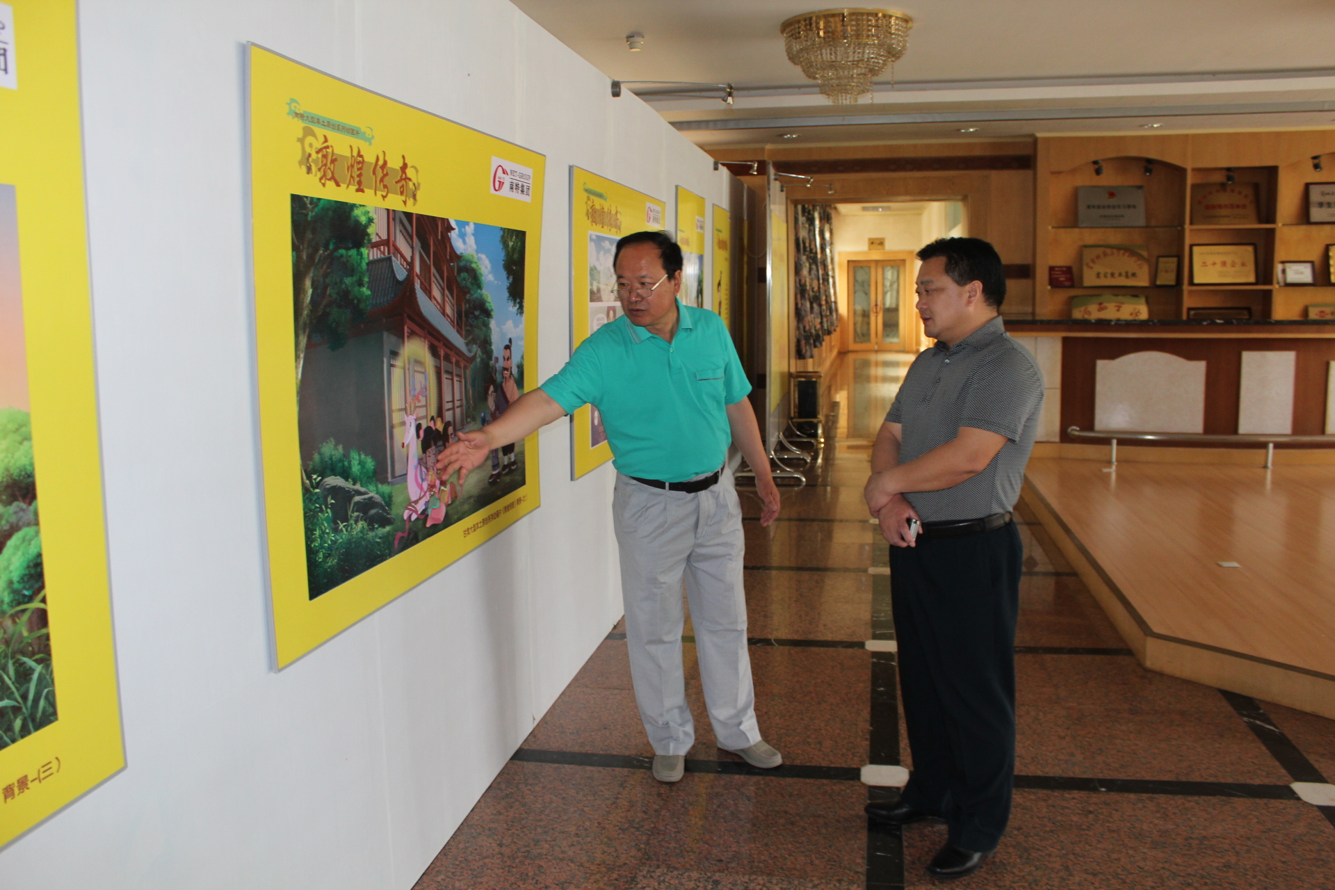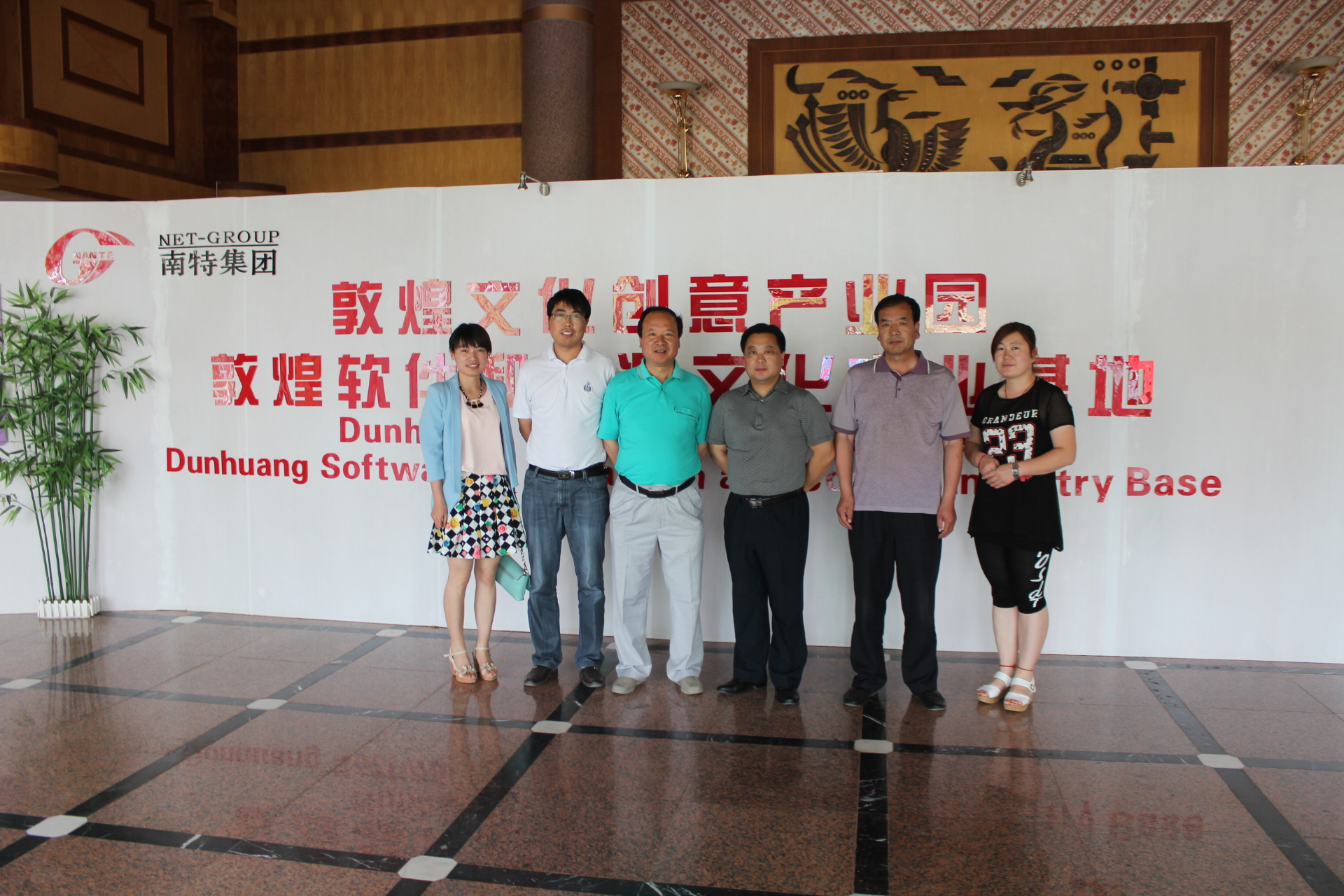 2014年6月10日,中南国家数字出版基地党工委副书记、管委会副主任王涛在敦煌文化广播电影电视出版局牛国平主任的陪同下到了敦煌文化创意产业园参观指导工作。