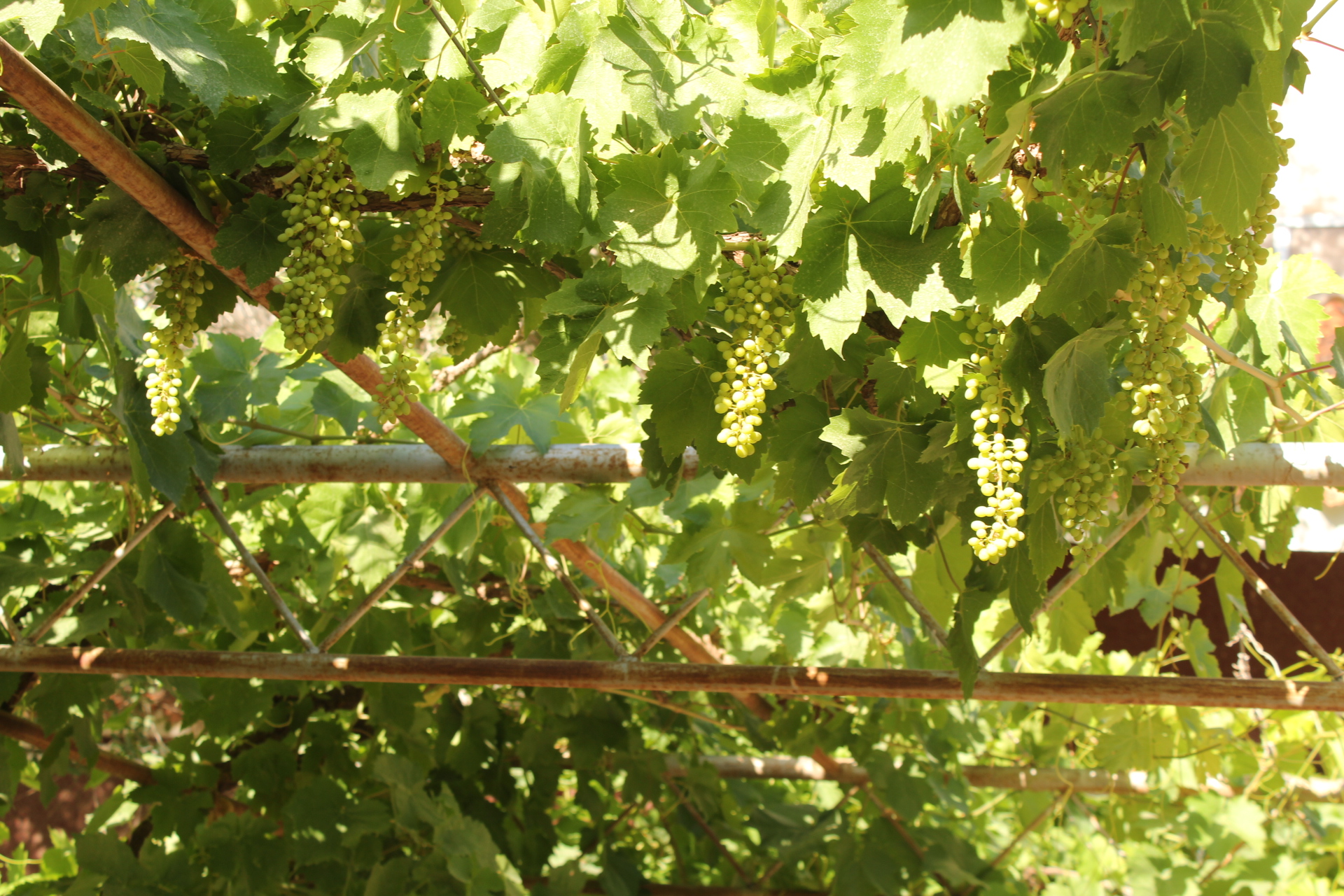 今年,敦煌文化创意产业园利用葡萄长廊的空地开辟了菜地,在菜园子里种植了西红柿、茄子、长豆角、辣椒、萝卜、番瓜、西瓜、葡萄等瓜果蔬菜。自从种植以来,经过园区经理周明书、园艺葸占奎、门卫代连宝的细心呵护,他们定期对蔬菜进行除草、喷打农药、浇灌党河水,现在,菜园子里已经硕果累累、瓜果飘香。