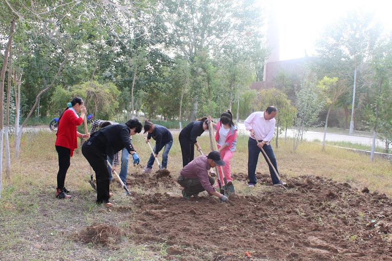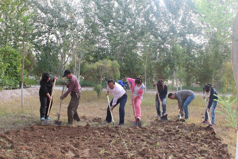 9月14日上午,敦煌文化创意产业园组织员工开展了一次义务劳动,对该园区内后院的一块地进行了翻土,目的是开辟菜地,为明年的种菜做好准备,一来可以供员工自己吃到绿色健康的蔬菜,二来可以为园区节省一些开支。