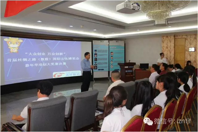 9月16日下午,公司筹已久的“大众创业 万众创新”首届丝绸之路(敦煌)国际文化博览会嘉年华双创大赛决赛在敦煌文化创意产业园举行,参加此次双创大赛的嘉宾有敦煌市科技局李局长、敦煌市宣传部王部长、敦煌市人社局王主任,各参赛代表团和选手、敦煌艺术研究院各位书画家和艺术家、敦煌艺术共创空间的各位企业代表、还有敦煌文博会数字动漫展的全国参展商和参加数字创意论坛的前期准备工作人员、南特集团敦煌文化创意产业园的员工,敦煌动漫基地的全体员工近百人参加和观摩本次大赛。决赛正式开始前,科技局李局长和宣传部王部长分别发表讲话并在文博会期间在敦煌举办双创大赛予以肯定和鼓励,接着,双创大赛主任南振岐董事长讲话并宣布双创大赛决赛正式开始。